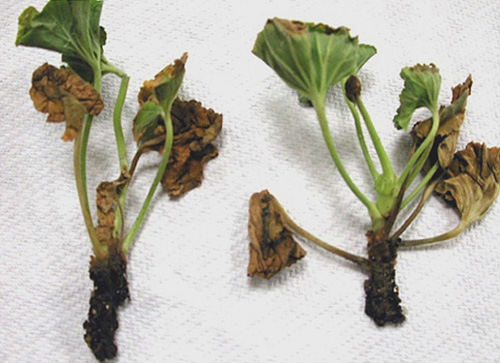 Ця хвороба проявляється у стеблових живців багатьох рослин, але найбільше цим страждає пеларгонія. Вона може проявитися в результаті великої вологості або надмірного ущільнення грунту, що перешкоджає вільному проходженню вологи.