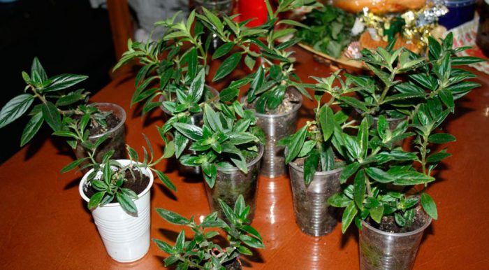 Висів насіння рекомендується проводити в останні дні лютого, при цьому потрібно врахувати, що посіви будуть мати потребу в тепличних умовах. Наповніть ємність зволоженою почвосмесью, що складається з піску і торфу, вирівняйте її поверхню і рівномірно розподіліть на ній насіння. Зверху їх присипають тонким шаром субстрату, ємність накривають плівкою (склом). Посіви потрібно тримати в теплі (від 23 до 25 градусів). Пам'ятайте, що їх потрібно провітрювати кожен день, а зволожують грунтосуміш тільки, якщо в цьому є необхідність. Перші сіянці можуть здатися через 15-20 днів з моменту посіву. Як тільки це відбудеться, ємність потрібно переставити в добре освітлене місце, надійно захищене від прямих променів сонця. При необхідності подсвечивайте сходи лампою денного світла. Після того як на сіянцях сформуються 3 або 4 справжні листові пластини, їх потрібно буде распикировать за індивідуальними горщикам. Пікірувати колумнею не потрібно.