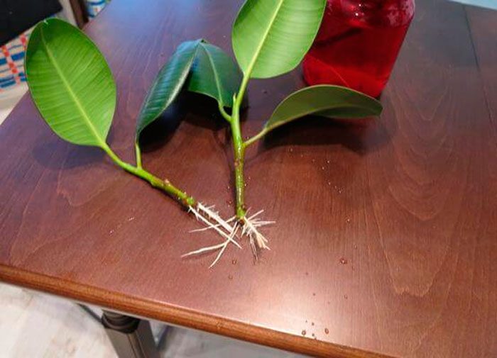 Як правило, живці, зрізані з зеленолистной різновиди фікуса каучуконосного, дають корені дуже швидко, і проблем з ними не виникає. Якщо ж ви взяли держак від вариегатного сорти фікуса, то перед висаджуванням на укорінення місце зрізу треба обов'язково помазати гетероауксином або корневином. Висаджують їх у міні-теплички з нижнім підігрівом. Однак потрібно бути готовим до того, що такі живці не укорінятимуться.