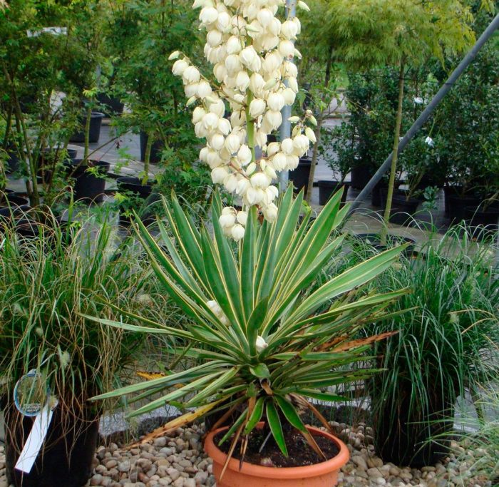 - Цвітіння. Юку в домашніх умовах вирощують як декоративно-листяні великих рослин.