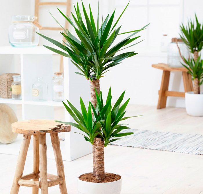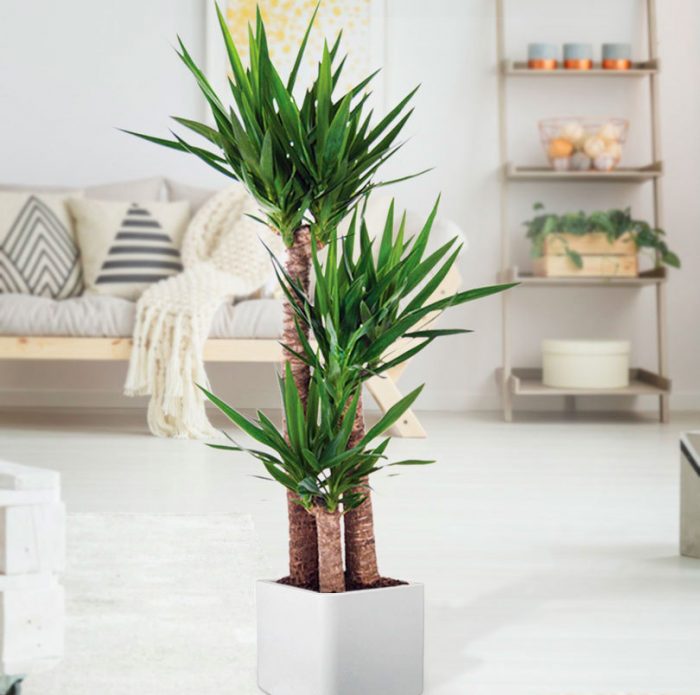 При вирощуванні в домашніх умовах деревце рекомендується розміщувати в холі або великій кімнаті, тому що у висоту вона може досягати близько чотирьох метрів. Така рослина зовні дуже схоже з помилкової пальмою. Слід враховувати, що цвітіння спостерігається тільки у дорослої юки, під час якого з'являються білі квіточки зовні схожі з дзвіночками. Така рослина часто використовується в якості прикраси великого приміщення, при цьому найбільшу цінність представляють ті кущі, які володіють декількома точками росту (ветвящимся стволом).